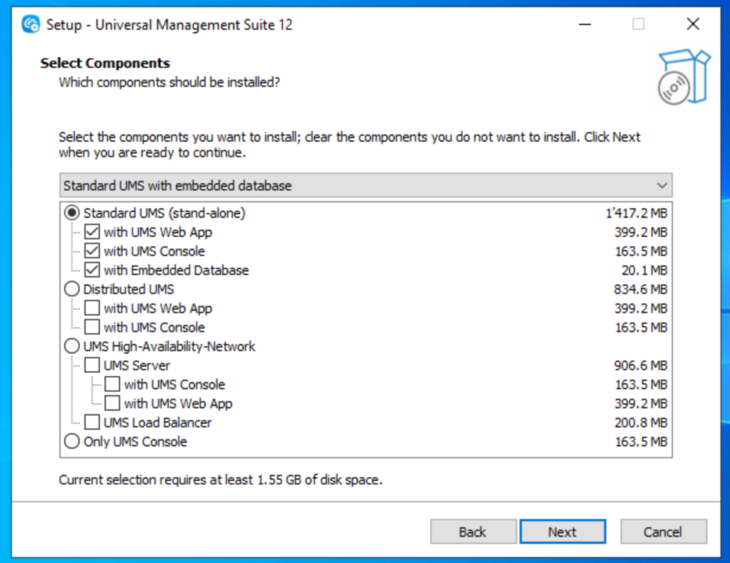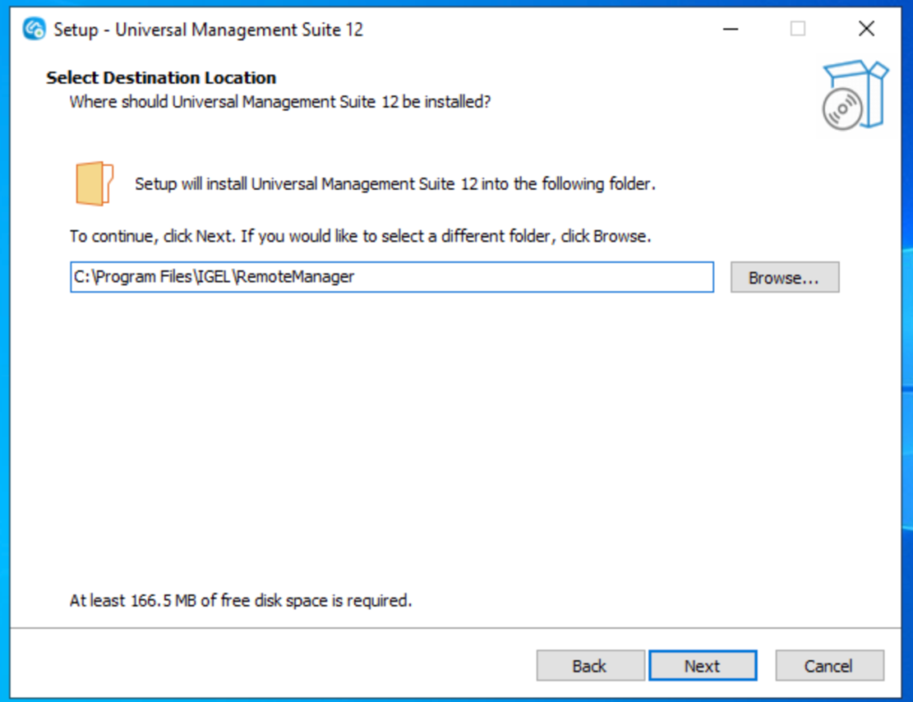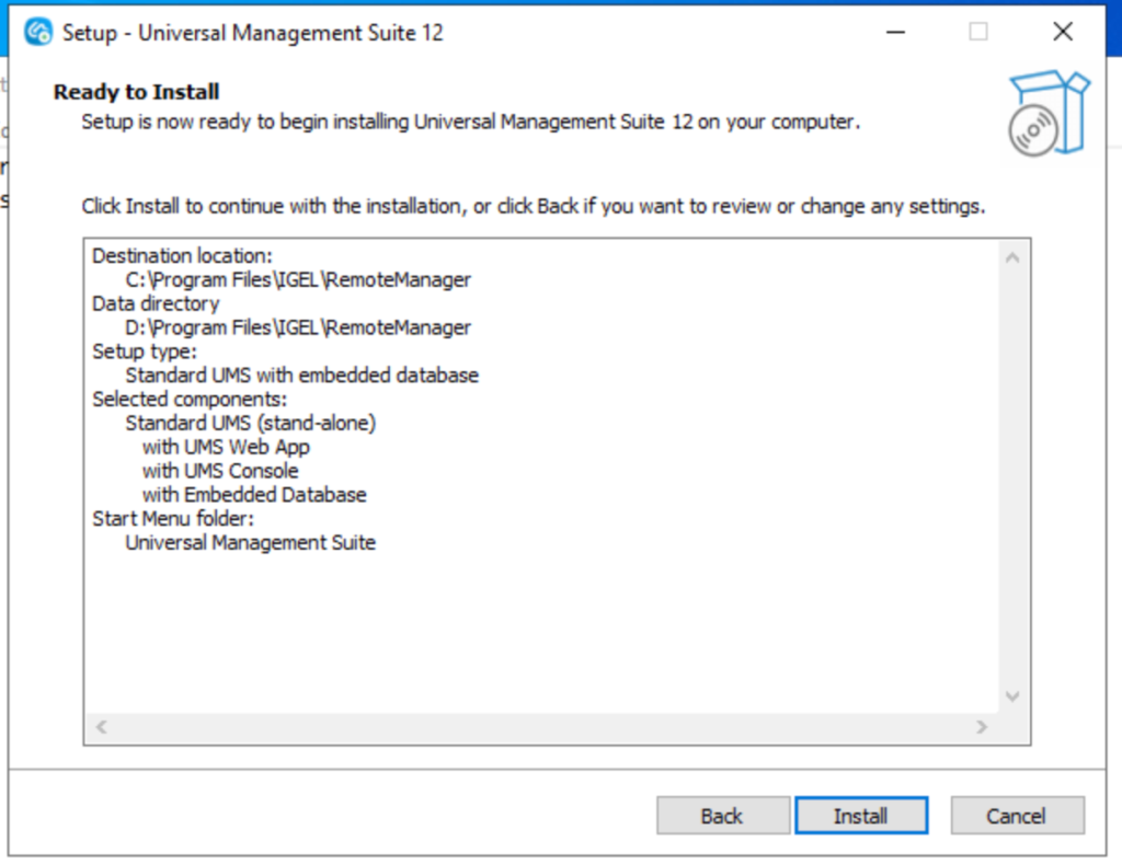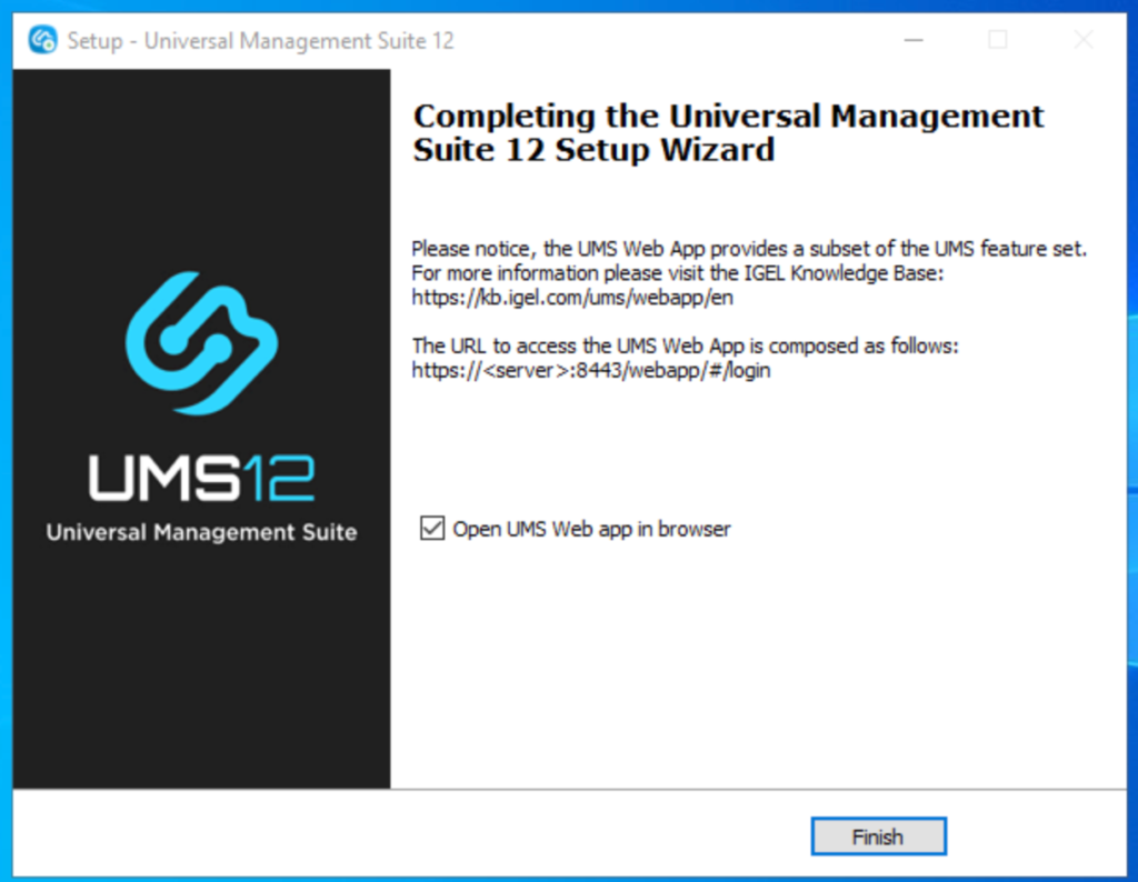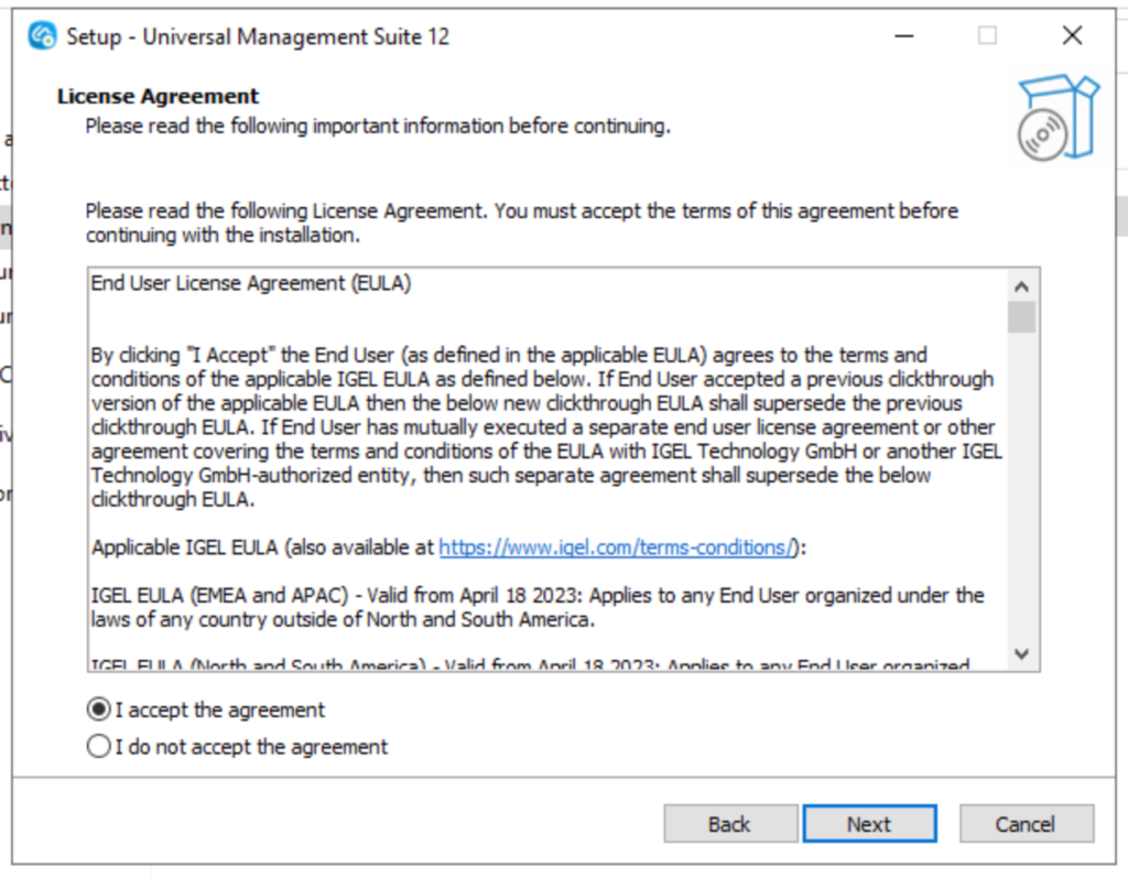 Schritt 1: Führen Sie die Installationsdatei Setup-igel-ums-windows_12.05.130.msi aus, akzeptieren Sie die Lizenzbedingungen und klicken Sie auf «Next».