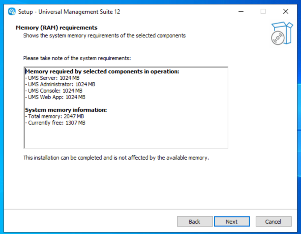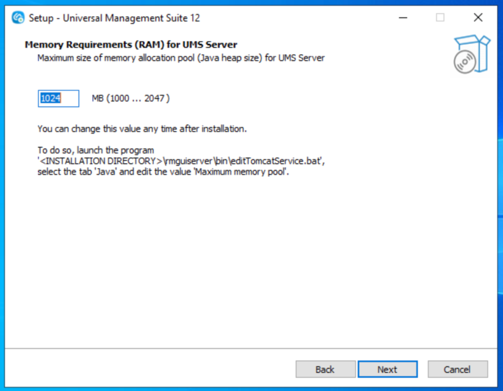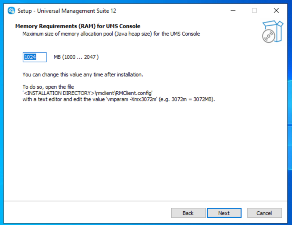 Schritt 5: Legen Sie den Java Heap Space für den UMS-Servers fest, klicken Sie auf «Next».