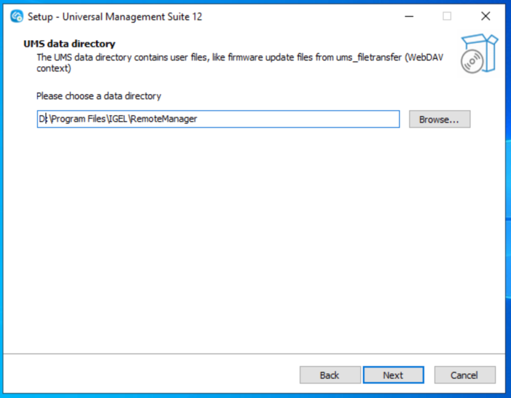 Schritt 8: Passen Sie bei Bedarf das UMS Daten Verzeichnis an, klicken Sie auf «Next».