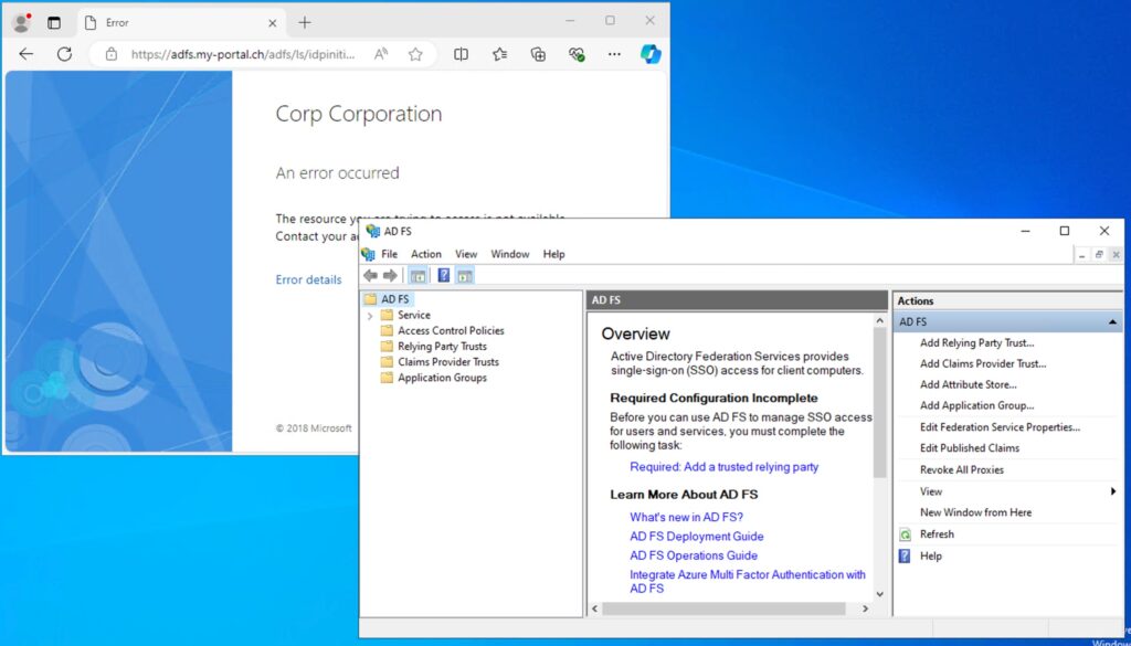Schritt 10: Nach dem Neustart können Sie die Seite ‘https://adfs.my-portal.ch/adfs/ls/idpinitiatedsignon.asmx’ aufrufen und die AD FS Management Tools starten.