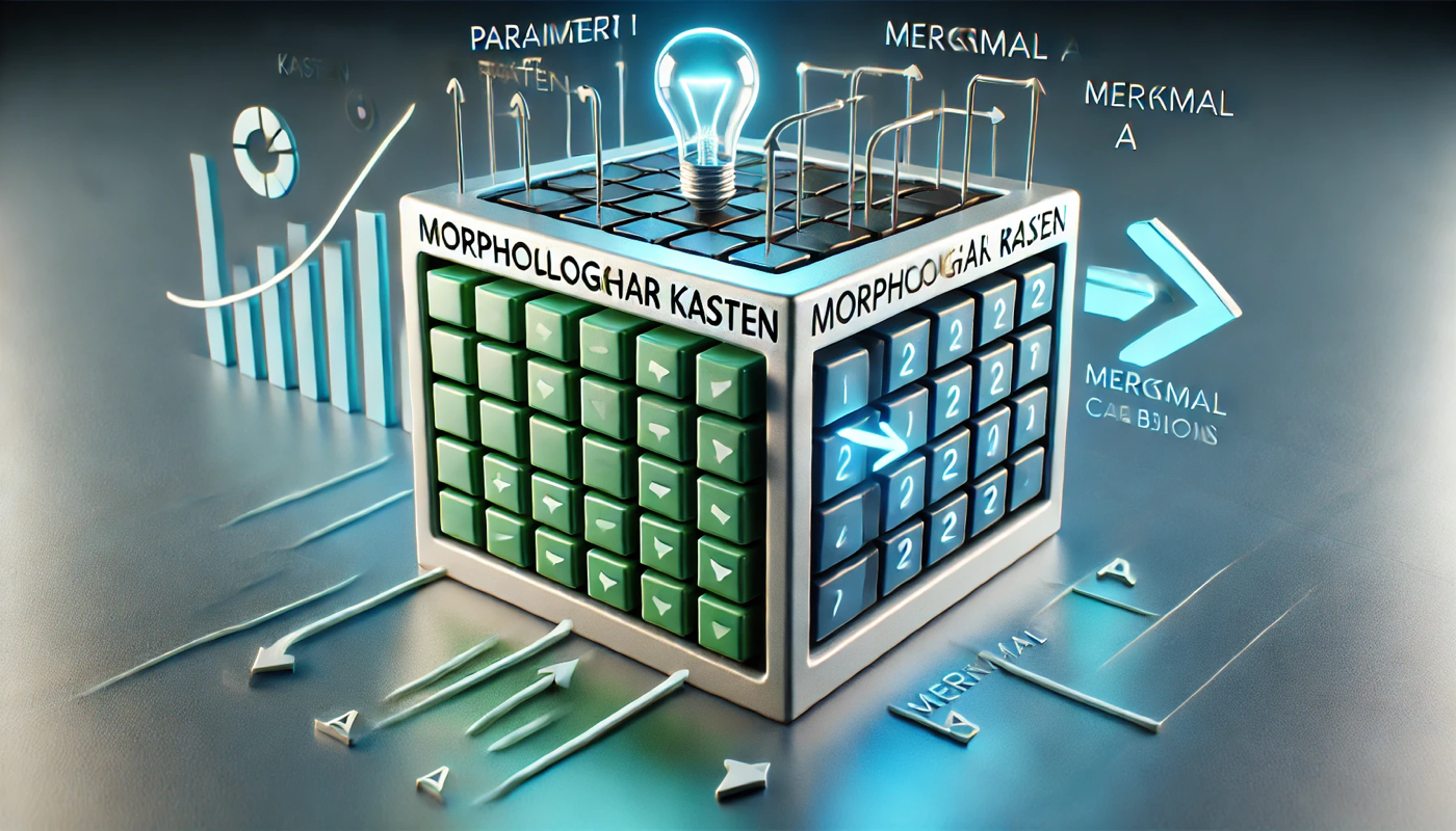 Beim morphologischen Kasten wird ein Problem in seine Teile (Parameter, Komponenten) zerlegt. Anschliessend werden die verschiedenen Ausprägungen (Merkmale, Varianten) für jedes Teil beschreiben. Zuletzt werden die Ausprägungen zu Lösungsmöglichkeiten kombiniert.