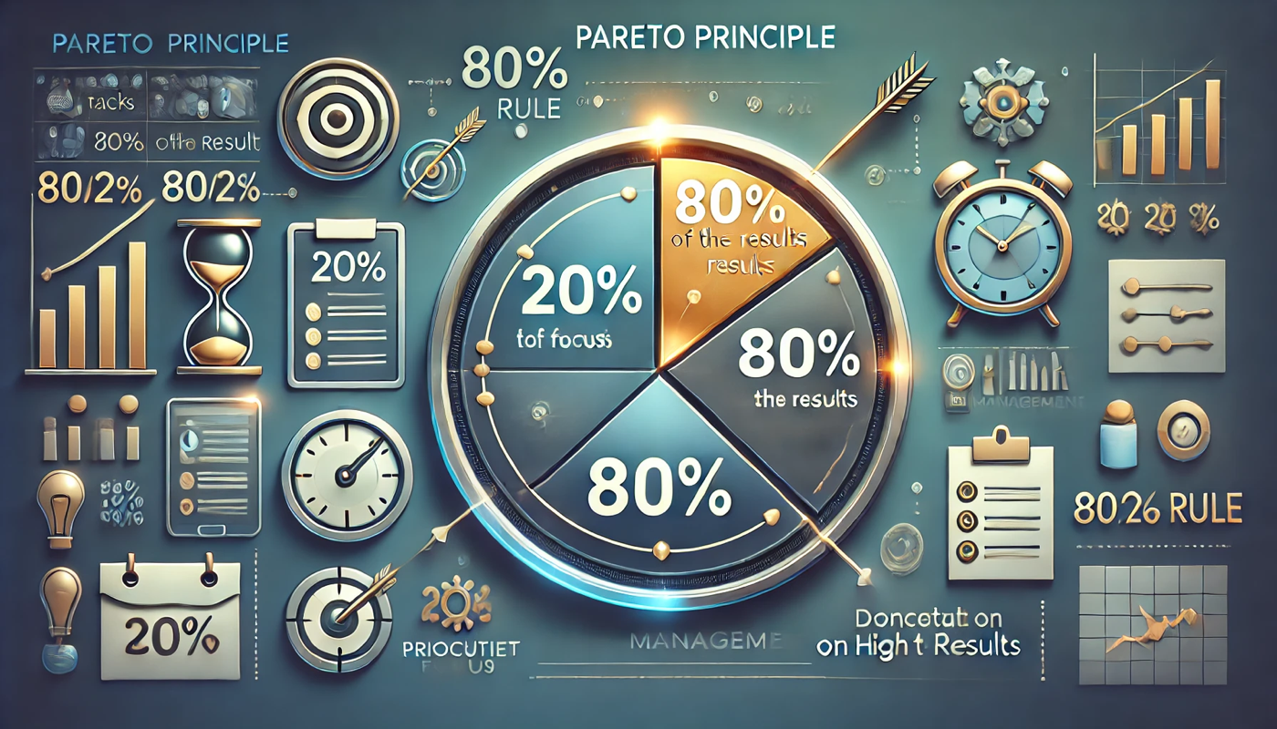 Das Pareto-Prinzip, auch als 80/20-Regel bekannt, besagt, dass 80 % der Ergebnisse oft mit 20 % des Gesamtaufwands erreicht werden können. Die Anwendung dieses Prinzips auf das Selbstmanagement bedeutet, sich auf die 20% der Aufgaben zu konzentrieren, die 80% des Wertes liefern. Dieses Prinzip hilft, die Ressourcen auf die Aktivitäten zu konzentrieren, die die grösste Wirkung haben.