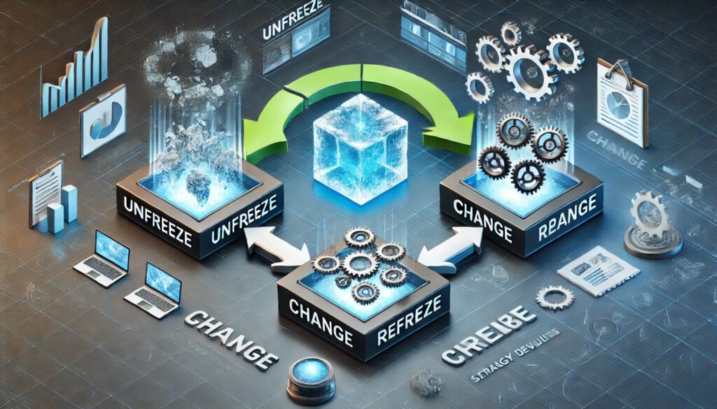 Unfreeze (Auftauen) | In dieser Phase wird das Bewusstsein für die Notwendigkeit der Veränderung geschaffen. Hier müssen Stakeholder überzeugt werden, dass eine Strategieentwicklung notwendig ist und dass die Zwischenergebnisse ein wichtiger Meilenstein in diesem Prozess sind. | – Kommunikation der Dringlichkeit und der Vorteile der Veränderung. – Erklärung, warum die bestehenden Bedingungen angepasst werden müssen. – Einbindung der Stakeholder in die Diskussion der Herausforderungen und Chancen der neuen Strategie. | – Stakeholder-Analyse: Verständnis für das aktuelle Mindset und die Interessen der Stakeholder, um gezielt Bedenken anzusprechen. – Schaffung eines Bewusstseins: Deutliche Kommunikation darüber, warum die Strategieentwicklung und die Zwischenergebnisse wichtig sind. |