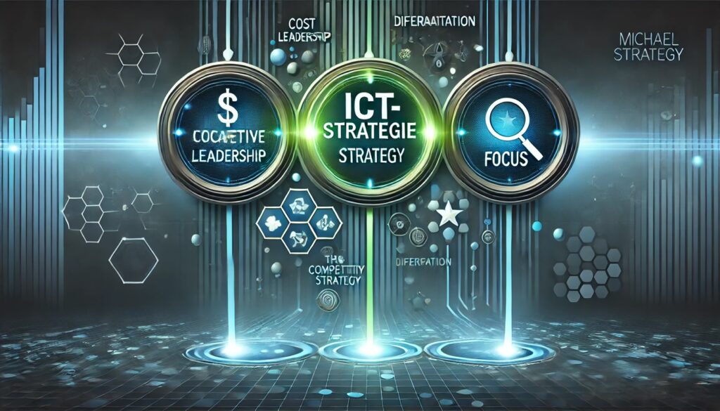 Kostenführerschaft | Wenn das Unternehmen eine Kostenführerschaft anstrebt, muss die ICT-Strategie darauf ausgerichtet sein, durch Automatisierung, Prozessoptimierung und Effizienzsteigerungen die Betriebskosten zu senken. Hierbei spielen Technologien wie Cloud-Computing, Robotic Process Automation (RPA) und digitale Transformation eine zentrale Rolle. |
