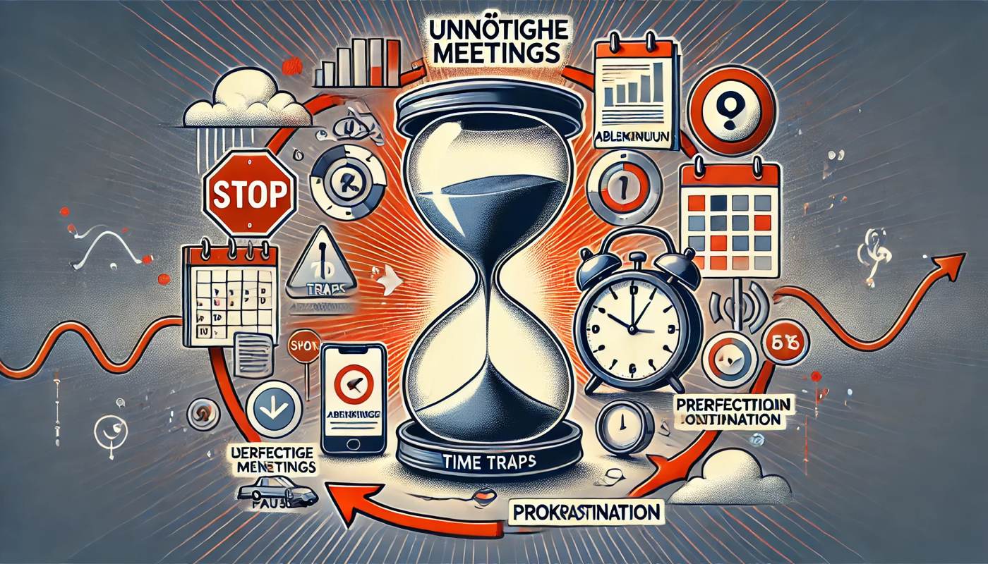 Zeitfallen sind Aktivitäten oder Situationen, die dazu führen, dass Menschen unverhältnismässig viel Zeit aufwenden, ohne entsprechende Ergebnisse oder Nutzen zu erzielen. Diese Zeitfallen können die Produktivität erheblich beeinträchtigen und führen oft zu Stress, da sie die verfügbare Zeit für wichtigere Aufgaben einschränken.